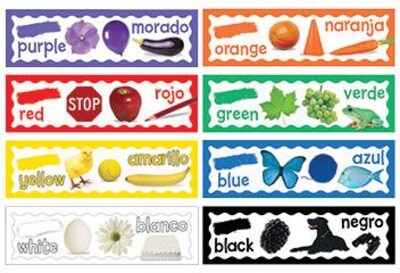 Colors mini bulletin board set highlights colors in English and Spanish, encouraging children to dive into a different culture.