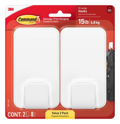 - INCLUDES - 2 Extra Large, White Heavyweight Command Utility Hook and 8 Large Command Strips; 1 hook holds up to 15 lbs.