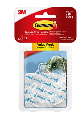 Command Medium Hooks, 2 lb., Clear, 6/Pack (17091CLR-6ES)