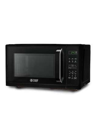 Heat and re-heat your favorite foods and beverages with this outstanding COMMERCIAL CHEF microwave oven countertop. With an impressive capacity of 0.9 cubic feet, this black microwave ensures you can grab and go with delicious meals. The appealing and timeless decor of this microwave black (18.9" x 14.6" x 10.7") will fit easily in your microwave cabinet or kitchen countertop in homes, apartments, RVs, dorms, and more. Weighing only 27.6 lbs., you can transport this microwave 900 watt with digital timer anywhere so heated food and drink is within reach. This microwave small has 10 power levels, ensuring you find the function that works for you, including settings for 6 pre-set menus, and defrost by time or weight. With digital LED controls for all settings, our small countertop microwave will heat from 30 seconds to 30 minutes!