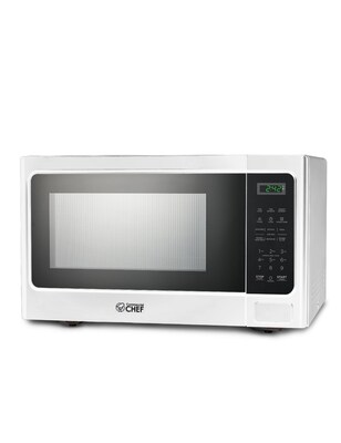 Heat and re-heat your favorite foods and beverages with this outstanding COMMERCIAL CHEF countertop 1000 watt microwave. Our microwave oven an impressive capacity of 1.3 cubic feet and ensures you can grab and go with delicious meals. The appealing and timeless decor of this white microwave 1000 watt (20.4" x 16.7" x 12.4") will fit easily on your kitchen counter, microwave shelf, dorm room, RV, apartment, and more. Weighing only 33.5 lbs., you can transport this microwave pasta cooker and portable microwave with timer anywhere so heated food and drink is within reach. This 1.3 cubic feet microwave has 10 power levels, ensuring you find the function that works for you, including 6 pre-set menus to microwave popcorn and other common foods, defrost by weight and time, as well as express cook.