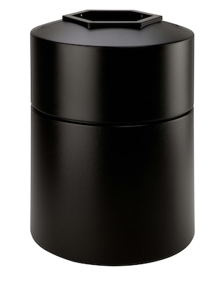 The black PolyTec Series 45 Gallon Round Waste Container has a sleek, smooth design that creates a modern stream-lined look.The large 45-gallon capacity makes this ideal for any indoor or outdoor application. Its deep, telescoping lift off lid hides the trash bag for a clean appearance and its shape and large capacity is perfect for windy or high traffic environments.