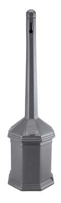 With the Smokers' Outpost you can keep cigarette litter hidden from public view while maintaining a clean and neat appearing entrance or smoking break area. The compact and stream-lined gray Site Saver® offers a unique hexagon style that makes it ideal for smaller entrances and designated smoking areas. With a keyhole opening it allows cigarettes to easily enter but keeps unwanted litter out. The patented oxygen-restricting design extinguishes cigarettes quickly, with no sand or water required. The ash urn includes a 5-quart galvanized pail to easily empty cigarette litter.