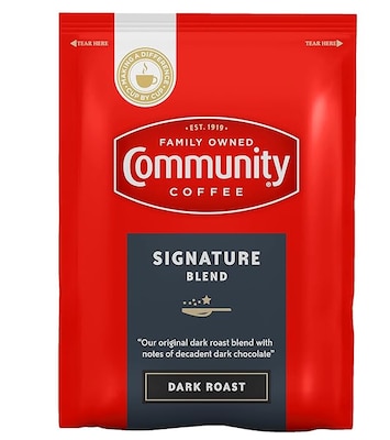 The blend that started it all. Roasted to deep, dark perfection, this Community Coffee Signature Blend dark roast has a rich, bold flavor that has been a family tradition for four generations. Made from only 100% select Arabica coffee beans. These premeasured coffee packets are useful for brewing 40 (10-12 cup) pots of rich, smooth distinctive Community coffee. Perfect for offices, businesses and foodservice operations.