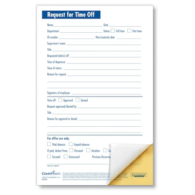 ComplyRight 2 Part Small Request for Time Off, Pack of 50 (A2203)