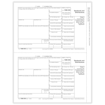 ComplyRight 2025 1099-DIV Tax Form, 1-Part, 2-Up, Payer Copy C, 50/Pack (513250)