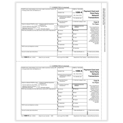 ComplyRight 2025 1099-K Tax Form, 1-Part, 2-Up, 50/Pack (532625)