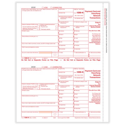 ComplyRight 2025 1099-K Tax Form, 1-Part, 2-Up, Copy A, 50/Pack (532525)