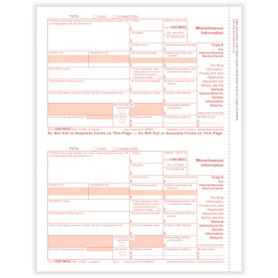 ComplyRight 2025 1099-MISC Tax Form, 1-Part, 2-Up, Federal Copy A, 50/Pack (511050)