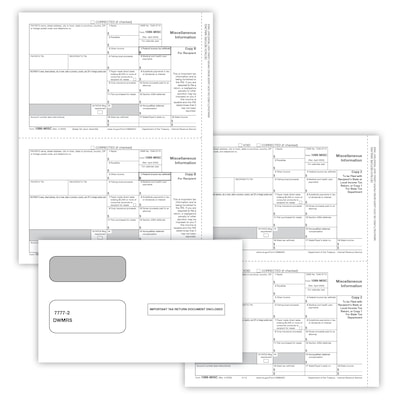 ComplyRight 2025 1099-MISC Tax Form Envelopes and Recipient Copy Only, 3-Part, 2-Up, Copy B, C/2, 50/Pack (6113E)