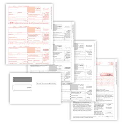 ComplyRight 2025 1099-NEC Tax Form Envelopes, 4-Part, 3-Up, Copy A, B, C/2, 1096 Transmittal, 100/Pack (NEC6103E100)