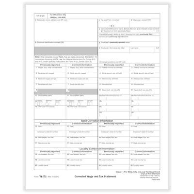 ComplyRight 2025 W-2C Tax Form, 1-Part, Copy 1/D, 50/Pack (531550)