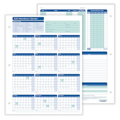ComplyRight 2026 Attendance Calendar Card, 50 Forms/Pack (A4000W50)