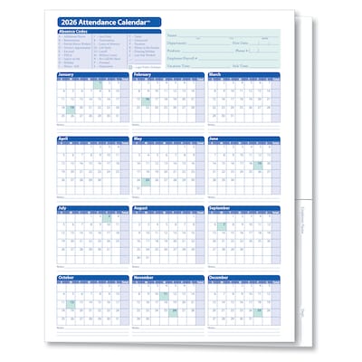 ComplyRight 2026 Attendance Calendar File Folder, 25 Forms/Pack (A3050)