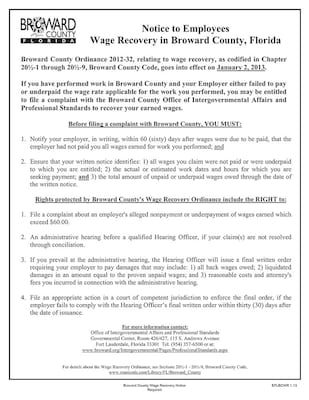 - Comply with posting requirements for Broward County wage recovery ordinance