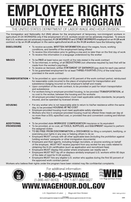 • Satisfy H-2A requirements with H-2A employee rights poster