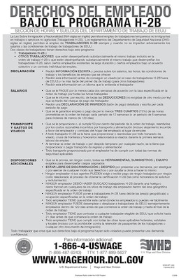 - Poster outlines H-2B workers' rights regarding disclosure, wages, transportation, and other provisions, this poster is required under the H-2B program