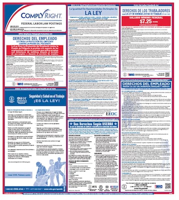 ComplyRight™ Federal Labor Law Poster in Spanish. Get your business in compliance with the latest federal labor law posting requirements. All-in-one, attorney-approved poster covers all mandatory postings. Consolidated law poster comes in easy-to-read format for maximum space efficiency.