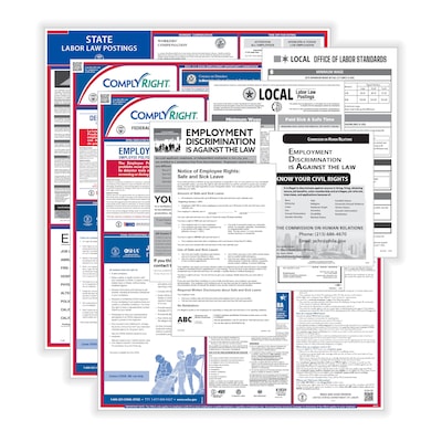 All U.S. employers, regardless of size, must display certain federal and state postings where employees and applicants can easily view them. In addition, a large number of employers are now faced with keeping track of local labor law postings from city and county agencies. Failing to display the correct postings can result in hefty fines, increase the risks of employee lawsuits and multiply financial damages. Changes to these mandatory postings occur frequently, and can occur at any time throughout the year. ComplyRight Poster Service eliminates the burden of keeping up with constantly changing labor law posting requirements. This leading labor law poster replacement service includes a complete, high-quality, laminated federal, state and local poster set plus automatic shipments of replacement posters at no extra charge any time a mandatory update is issued by a government agency.