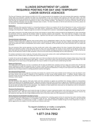- Under Illinois state law, day labor agencies that place workers on a daily or temporary basis in manufacturing, construction and other non-clerical occupations are required to register with the Illinois Department of Labor (IDOL)