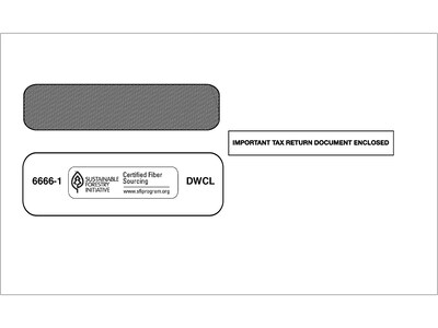 This double-window envelope accommodates the 2-Up W-2 tax form. The windows display both payer and recipient name and address. Features a moisture seal flap.