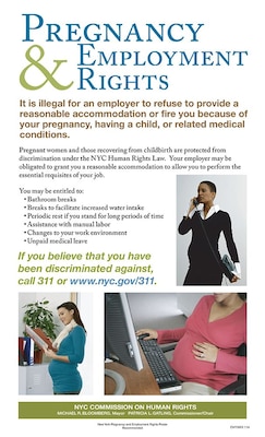 - New York city pregnancy and employment rights provides a concise summary of protections against illegal firing or other actions for pregnant women under the NYC human rights law