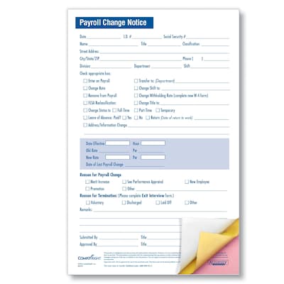 ComplyRight Payroll Change Notice, 3-Part, Small, Pack of 50 (A2173)