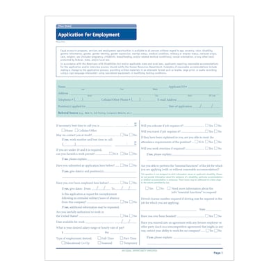 - Includes EEOC-approved question regarding applicant’s ability to perform the job, with or without accommodation, and a general non-harassment clause