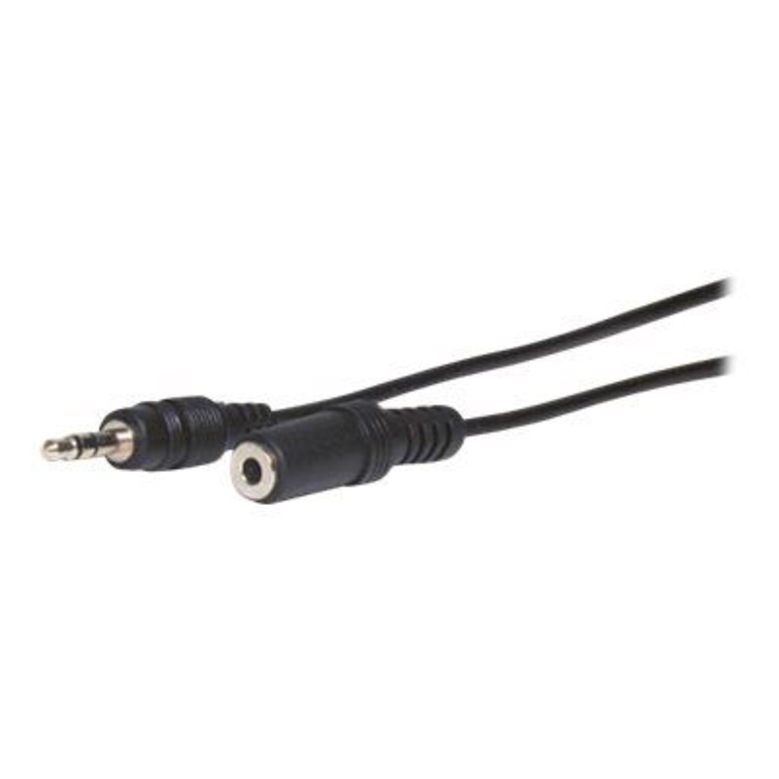 Has 3.5mm mini-phone stereo male connector on first end and mini-phone stereo female connector on second end