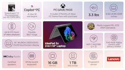 Runs on Windows 11 Pro, offering advanced productivity features, enhanced security, and seamless integration with Copilot+ AI tools.