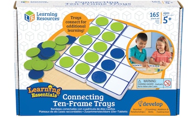 Visually teach the foundational concept of 10 with ten-frame trays. Set includes 10 ten-frame trays, 5 five-frame trays, 150 double-sided discs, and Activity Guide. Ages 5+.