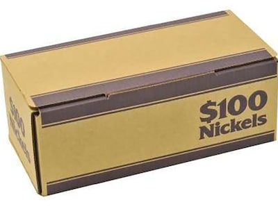 CONTROLTEK $100 of Nickels Coin Box, 1-Compartment, Kraft/Blue, 50/Pack (560060)