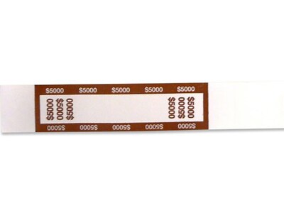 CONTROLTEK $5000 Currency Strap, White/Brown, 1000/Pack (560022)