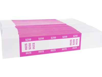 CONTROLTEK $250 Currency Strap, White/Pink, 1000/Pack (560018)