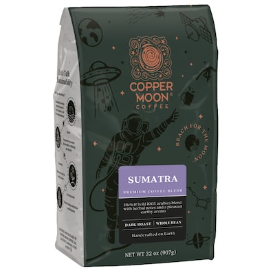 Copper Moon Sumatra Dark Whole Bean Coffee, Dark Roast, 2 Lb. (260144-BAG)