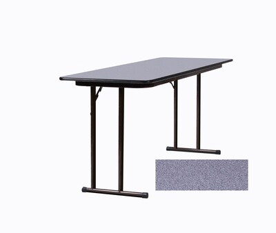 Correll Folding Gray Granite Seminar Table is designed with wood and steel to ensure durability. It has a plastic offset for maximum legroom and is suitable for training sessions.