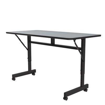 Correll Econoline 48"W x 24"D Adjustable Foldable Training Room Table, Laminate, With Wheels, Gray Granite (FTM2448TF15)