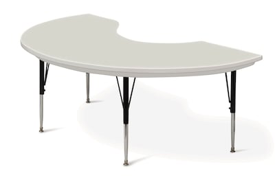 With a black steel frame, this Correll Inc. gray granite blow-molded plastic top activity table is both tidy looking and sturdy. The kidney-shaped, blow-molded plastic top is lightweight, waterproof and resists stains from juices, crayons, paint and permanent markers. This table measures 72" x 48" and features height adjustment from 21" - 31" in 1" increments, making it perfect for kindergarten to adult use.