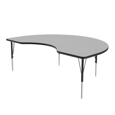Elevate your classroom with the Correll 48"x72" Kidney Shaped Classroom Activity Table. This height-adjustable (19"-29") school furniture is designed for active learning. The sophisticated Gray Granite Durable Thermal Fused Laminate (TFL) surface resists wear and tear, ensuring long-lasting use. Its unique kidney-shaped design promotes collaborative and dynamic student engagement. Enhance your educational environment with the durability and versatility of this Correll Activity Table.