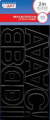 - Includes 133 peel-and-stick black vinyl characters, including uppercase letters, numbers, and symbols in Helvetica font