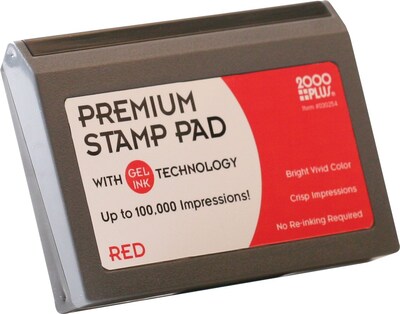 Cosco® 2000 Plus® Gel-based stamp pad in red color measuring 3 1/8" x 6 1/16" provides quality and detailed impressions. Pad features gel-based technology that provides longevity of up to 100000 impressions without re-inking.
