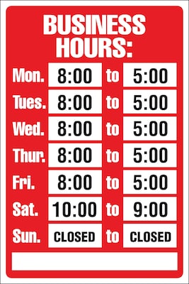 Cosco Business Hours Sign Kit, 8" x 12", Red (098071)