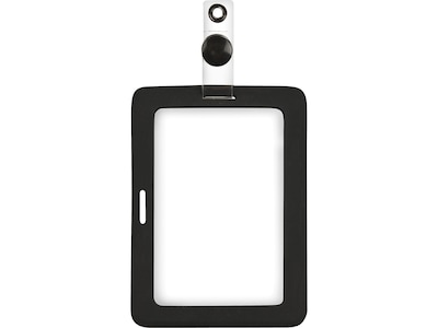 - Rubberized ID badge holder in black color has ultra-clear window for easy photo recognition