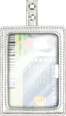 Easily use the cardholder in the vertical or horizontal position. Silver Cardholder has ultra clear window for easy visibility of photo identification. Can be used with a lanyard, reel cardholder or by itself. Designed to securely hold 3.375" x 2.125" ID or credit cards ation. Can be used with a lanyard, reel cardholder or by itself. Designed to securely hold 3.375" x 2.125" ID or credit cards