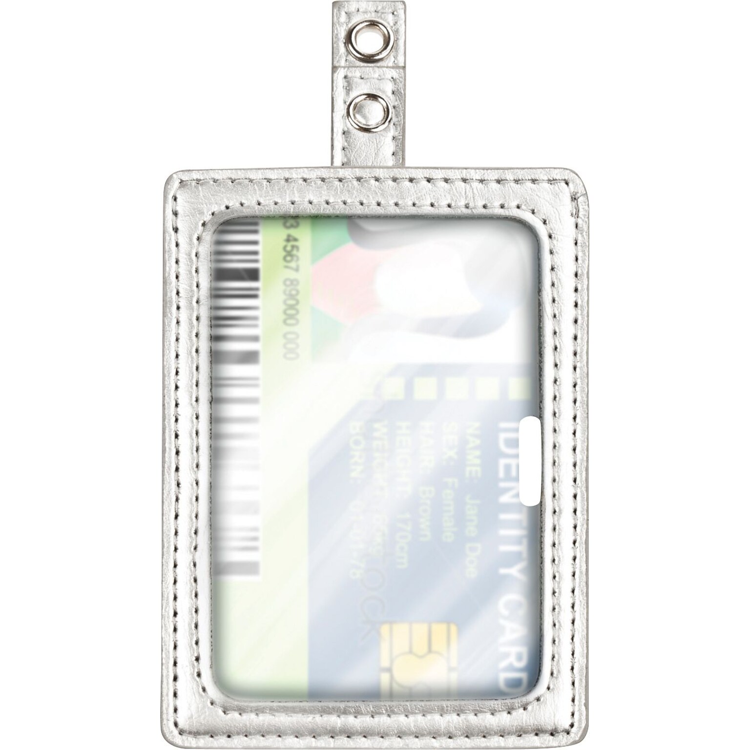 Cosco® MyID™ ID Badge holder in silver color measures 4" X 2.5" and features ultra clear window for easy visibility of photo identification and holds key cards.