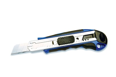 Cosco Heavy-duty snap-off utility knife in blue color has 4" blade for providing sharp cut and is retractable when not in use for safer operation. Durable knife has with metal channel for rigid support and molded soft grip handle for comfort use.