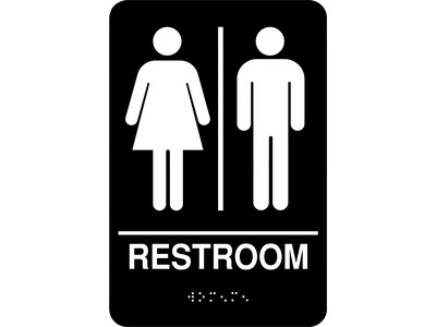 Cosco® Restroom Indoor Door Sign, 5.5" x 8.8", Black/White (098096)