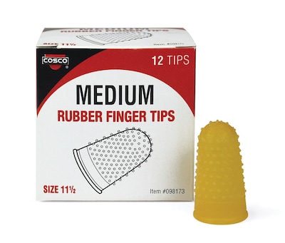 Protect skin from cuts while sorting and counting large stacks of paper by wearing one of these rubber finger pads. Each of these durable pads is ribbed to maintain counting accuracy. These Cosco rubber finger pads feature extra-thick tips to provide extra protection to skin and nails.