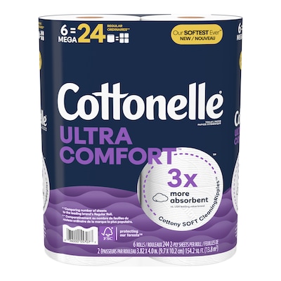 - 6 Mega Rolls of Cottonelle Ultra Comfort Toilet Paper (6 Mega Rolls = 24 regular rolls*), 268 sheets per roll—packaging may vary from what is shown.