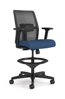 HON Ignition ilira-Stretch Mesh/Fabric Cafe-Height 4-Leg Chair, Fixed Arms, Black